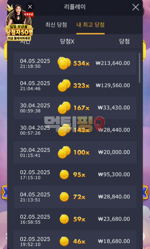 이 중에서 50만원을 환전 신청하고, 남은 10만원으로 다시 슬롯을 돌리던 중 예상치 못한 큰 당첨이 터졌습니다.