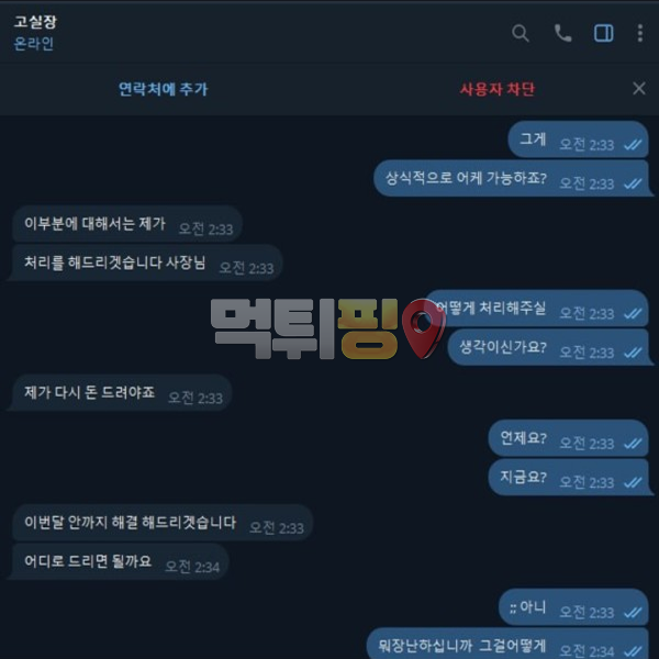 2. 총판과 연락 없었음에도 책임 전가 및 회피